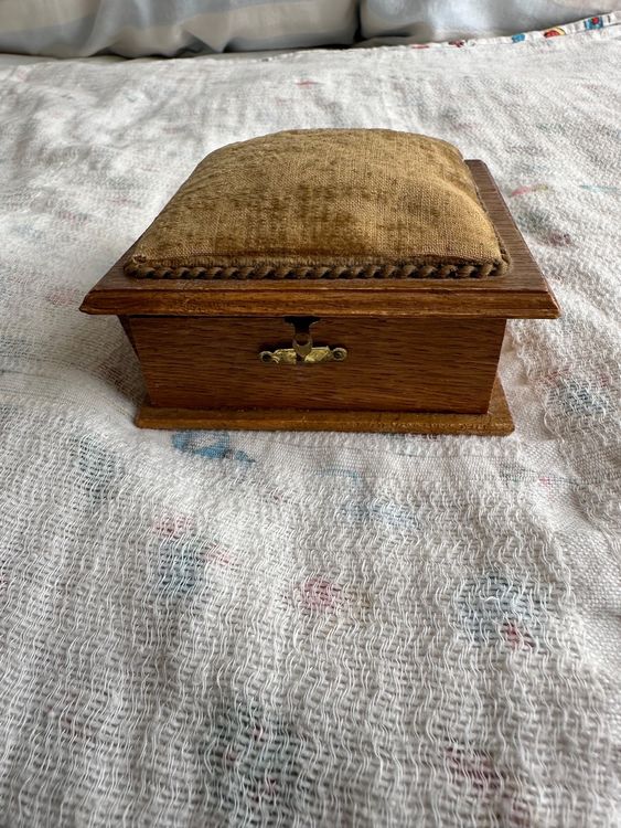 Vintage Nähkasten Aus Holz - Nadelbox Mit Nadelkissen Für Nähzubehör