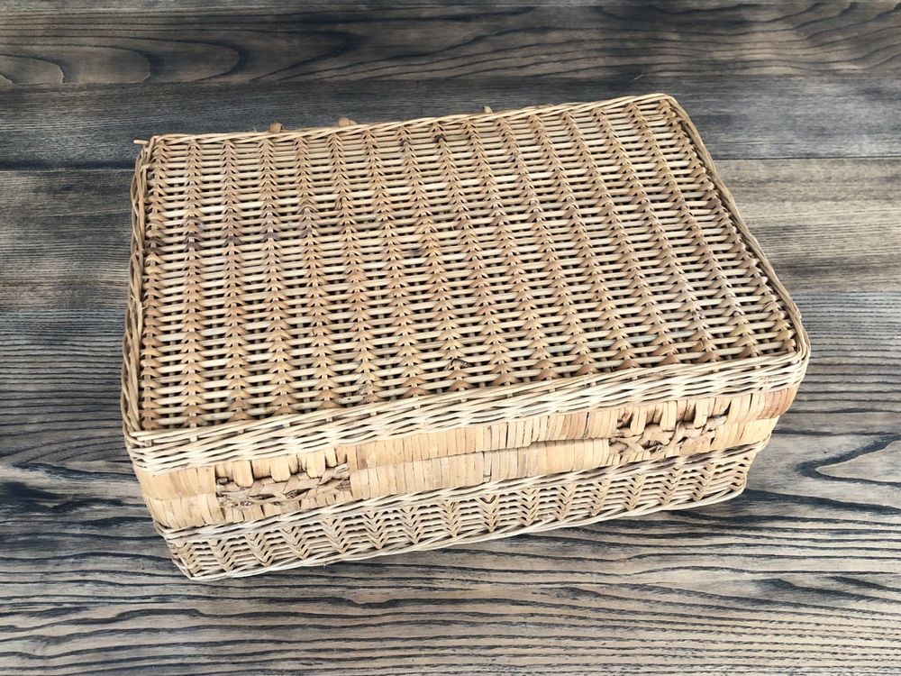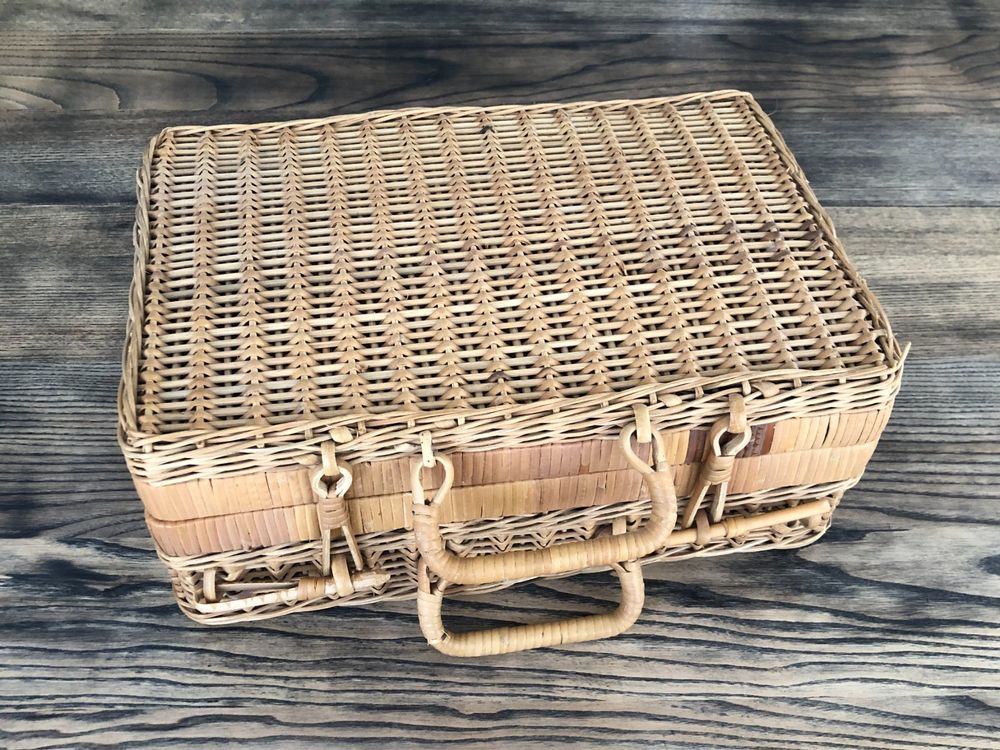 Geflochtener Rattan-Koffer - Vintage Picknickkorb Mit Metallschloss
