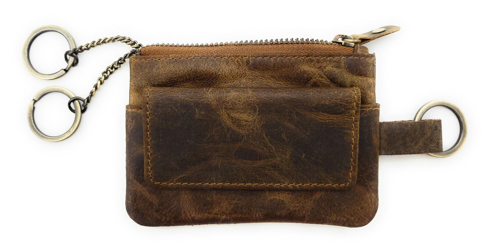 Wow, dieses Schlüsseletui aus echtem Leder ist nicht nur praktisch, sondern sieht auch noch mega stylisch aus! Hergestellt aus weichem, gewaschenem Rindleder im angesagten Used Look, fühlt es sich super an und hat diesen besonderen Vintage-Charme. Jedes Stück ist ein Unikat mit individuellen Farbnuancen und leichten Gebrauchsspuren - genau das macht den Charakter aus! Mit RFID-Schutz sind deine Karten (EC, Kreditkarten, Ausweise) vor unbefugtem Auslesen geschützt - wichtig in heutigen Zeiten! Das Etui hat alles, was du brauchst: 2 Schlüsselringe an Metallkette, 1 Fach für Karten/Münzen, 1 kleines Einsteckfach, 1 Fach für Einkaufswagenchip und 1 Reißverschlussfach hinten. Mit den Maßen 115x70x25 mm ist es handlich, passt in jede Handtasche oder Jackentasche. Der verstellbare Überschlag mit Druckknopf sorgt für sicheren Verschluss. Das 'Beste Freundinnen'-Design macht es zum perfekten Geschenk für deine beste Freundin - oder natürlich für dich selbst! Handgefertigt in traditioneller Feintäschnerarbeit, ist dieses Etui nicht nur ein praktischer Begleiter, sondern ein kleines Kunstwerk für den Alltag. Deine Schlüssel sind damit nicht nur sicher verwahrt, sondern sehen auch noch richtig gut aus!