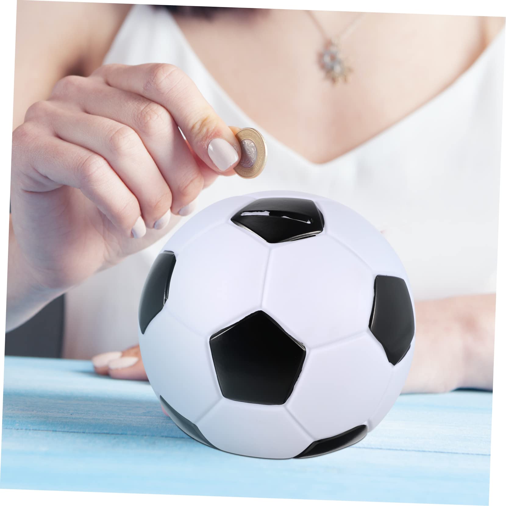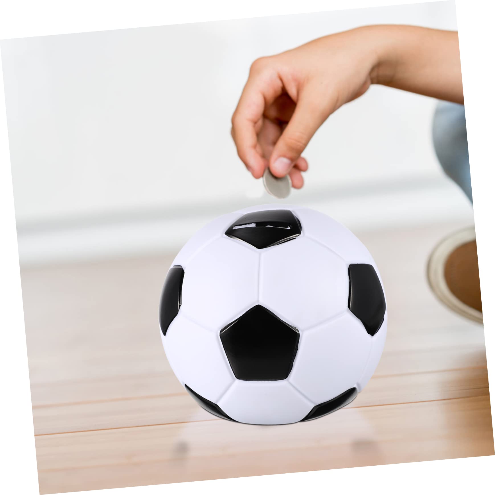 Kinder, aufgepasst! Diese coole Fußball-Spardose macht Sparen zum Spaß. Aus stabilem Vinyl-Material - die geht so schnell nicht kaputt, auch wenn sie mal runterfällt.\n\nMaße: 19x19x18cm - also schön groß für viele Münzen und sogar kleine Scheine. Mit großem Schlitz zum Einwerfen und nem praktischen Verschluss unten zum Herausnehmen.\n\nSieht nicht nur aus wie ein richtiger Fußball, sondern ist auch noch eine super Deko fürs Kinderzimmer. Auf den Schreibtisch, ins Regal oder aufs Nachtkästchen - passt überall hin.\n\nHilft den Kleinen, spielerisch das Sparen zu lernen. Kein unangenehmer Geruch, bruchsicher und die Farbe verblasst nicht. Perfekt als Geburtstagsgeschenk oder einfach so für zwischendurch. Macht mehr Spaß als langweilige Sparschweine!