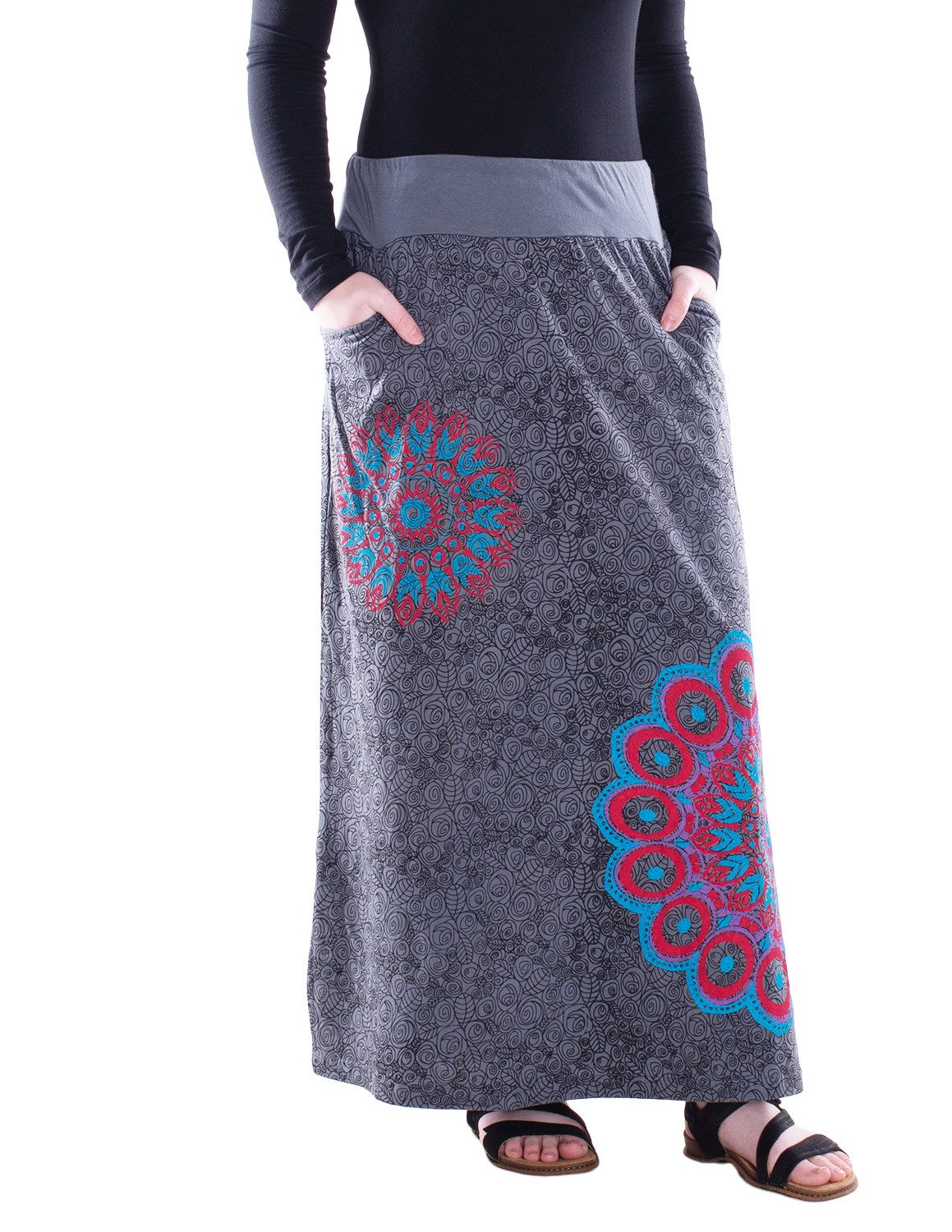 Vishes Damen Maxi-Rock Baumwolle - Asymmetrisch Mit Taschen