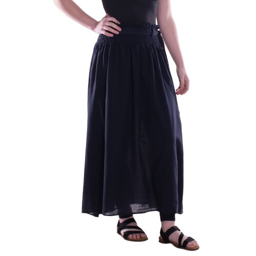 Dieser Vishes Maxi-Rock ist einfach traumhaft! Aus 100% weicher Baumwolle, super atmungsaktiv und angenehm auf der Haut. Der asymmetrische Schnitt und der Lagenlook mit dekorativen Bändern machen ihn zum absoluten Hingucker. Praktische große Taschen nicht vergessen - da passt alles rein was man so braucht. Mit elastischem Bund für perfekten Sitz. Länge zwischen 96-103 cm, je nach Größe. Hergestellt in Nepal unter fairen Bedingungen - jedes Stück ein Unikat. Perfekt für lässige Tage, Büro oder besondere Anlässe. Einfach mit Basic-Shirt kombinieren oder stylisch aufpeppen - der Rock macht immer eine gute Figur!