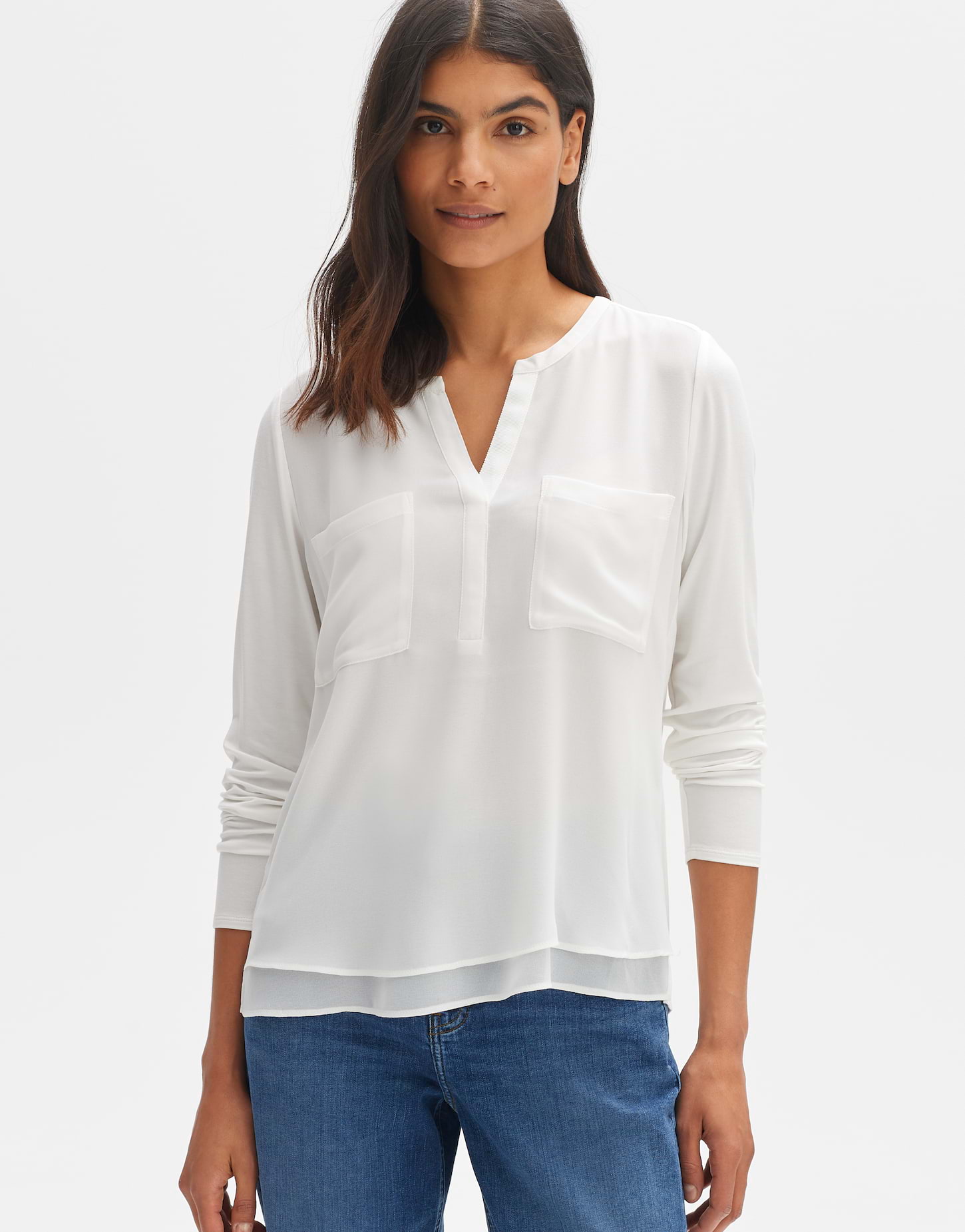 OPUS Damen Langarmbluse Viskose - Loose Fit Bluse Mit V-Ausschnitt