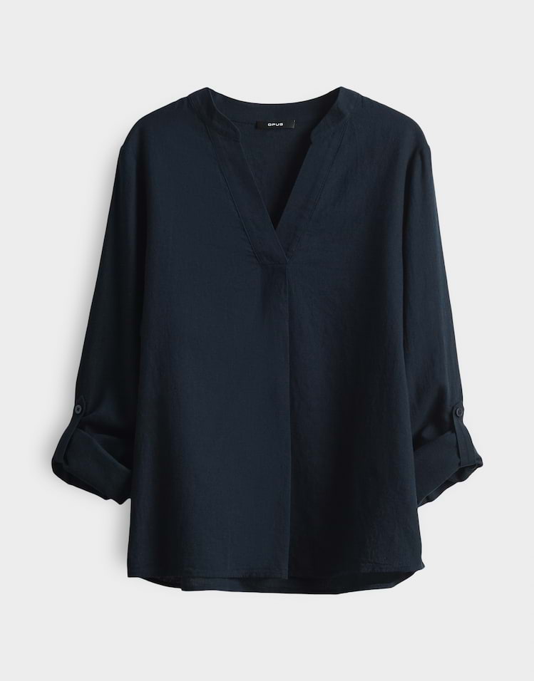 Entspannte Eleganz trifft auf Tragekomfort! Diese OPUS Langarmbluse aus weicher, nachhaltiger Viskose ist dein neuer Lieblingsteil. Der loose Fit sorgt für maximale Bewegungsfreiheit, während der V-Ausschnitt und Rundhals-Kragen einen femininen Look kreieren. Perfekt für sommerliche Abende, entspannte Bürotage oder stylische Freizeitoutfits. Das hochwertige Material fühlt sich angenehm auf der Haut an und ist dabei langlebig und pflegeleicht. Zeitloses Design, das sich vielseitig kombinieren lässt - ob zu Jeans, Röcken oder Hosen. OPUS steht für nachhaltige Mode, die Casual Chic mit femininem Stil vereint. Ein Must-Have für moderne Frauen!