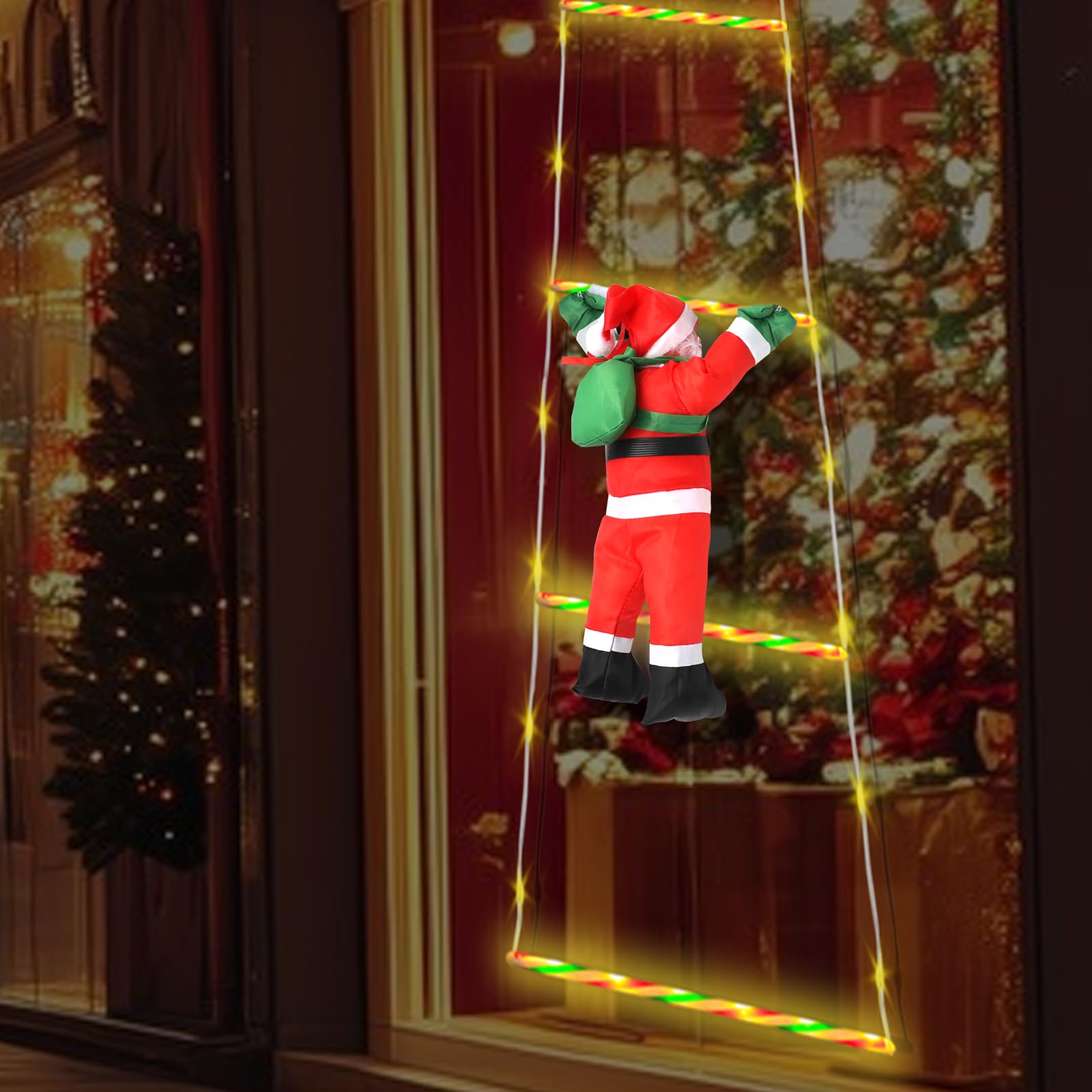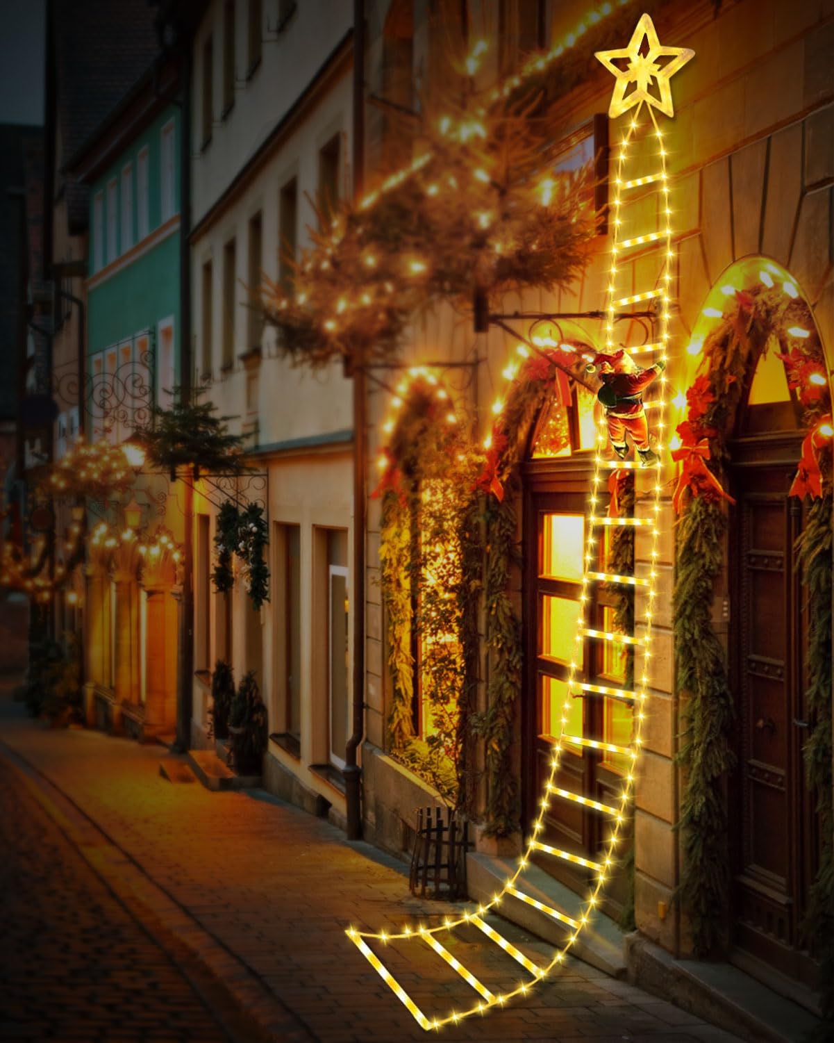 Diese bezaubernde Weihnachtsmann-Leiter von Vkechh bringt magische Weihnachtsstimmung in dein Zuhause! Mit 3m Länge und 338 LED-Lichtern in Warmweiß. 8 verschiedene Beleuchtungsmodi - von festem Licht bis zu bunten Wechseleffekten. Der praktische Timer schaltet nach 6 Stunden automatisch ab. Der Weihnachtsmann mit Klettverschluss kann an verschiedenen Positionen befestigt werden. Perfekt für Treppen, Türen, Fenster, Balkon oder Weihnachtsbaum. Wasserdicht für innen und außen. Mit Fernbedienung für bequeme Steuerung. Einfach aufhängen und in Weihnachtsstimmung kommen - das perfekte Geschenk für die Festtage!