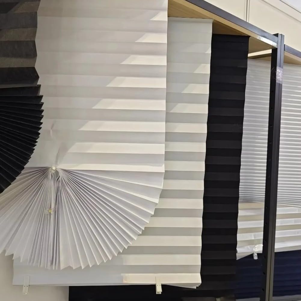 Perfekter Sichtschutz ohne Bohren! Dieser Plissee-Vorhang aus Vliesstoff ist die ideale Lösung für deine Fenster. Mit 60x150cm Maßen passt er super in viele Standardfenster. Das selbstklebende Design macht die Montage zum Kinderspiel: einfach zuschneiden, Schutzfolie abziehen und ankleben - fertig! Keine Löcher in der Wand, kein Stress. Der verdickte Vliesstoff filtert das Licht effektiv und gibt dir Privatsphäre. Wasserdicht und staubdicht - ideal für Küche, Bad oder Schlafzimmer. Mit den verstellbaren Clips kannst du die Höhe ganz easy anpassen. Auch in anderen Größen erhältlich. Einfach messen, bestellen und aufkleben - schon hast du eine perfekte Fensterdekoration! Perfekt für Mieter oder alle, die keine Lust auf Bohren haben.