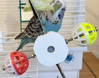 Damit dein Vogel nicht langweilig wird! Diese bunte Sitzstange mit vier drehbaren Glockenbällen sorgt für Action im Käfig. Aus Naturholz und Kunststoff gefertigt, rutschfest und kaubar - total sicher für deine gefiederten Freunde. Die bunten Kugeln und Glocken ziehen Vögel magisch an und fördern ihre Intelligenz. Einfach zu installieren mit den mitgelieferten Befestigungsscheiben, passt in die meisten Käfige. Perfekt für Papageien, Nymphensittiche, Wellensittiche und andere Vögel. Mach deinem Vogel eine Freude und gib ihm was zum Spielen und Trainieren!