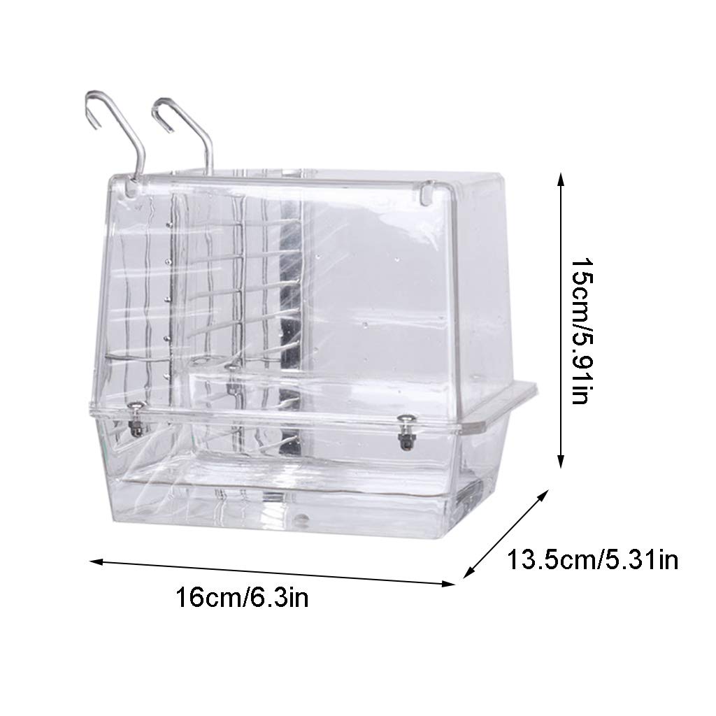 Deine Vögel werden dieses Bad lieben! Diese transparente Badebox ist perfekt für Papageien, Wellensittiche, Nymphensittiche und andere Ziervögel. In zwei Größen erhältlich: klein (10x12x11.5cm) und groß (11x14x13.5cm). Einfach an der Käfigtür befestigen - kein Werkzeug nötig. Das durchsichtige Design ermöglicht volle Sicht auf deine Vögel beim Baden. Einfach Wasser durch die vordere Öffnung nachfüllen. Aus robustem PP-Material. Macht die Käfigpflege zum Kinderspiel!