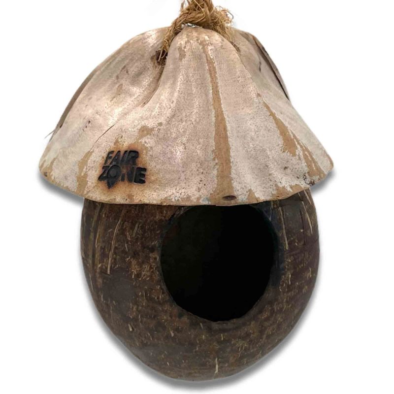 Ein Vogelhaus das natürlich aussieht und von unseren gefiederten Freunden geliebt wird! Handgefertigt aus echter Kokosnussschale mit einer süßen Holzleiter - da fühlen sich Vögel sofort wohl.