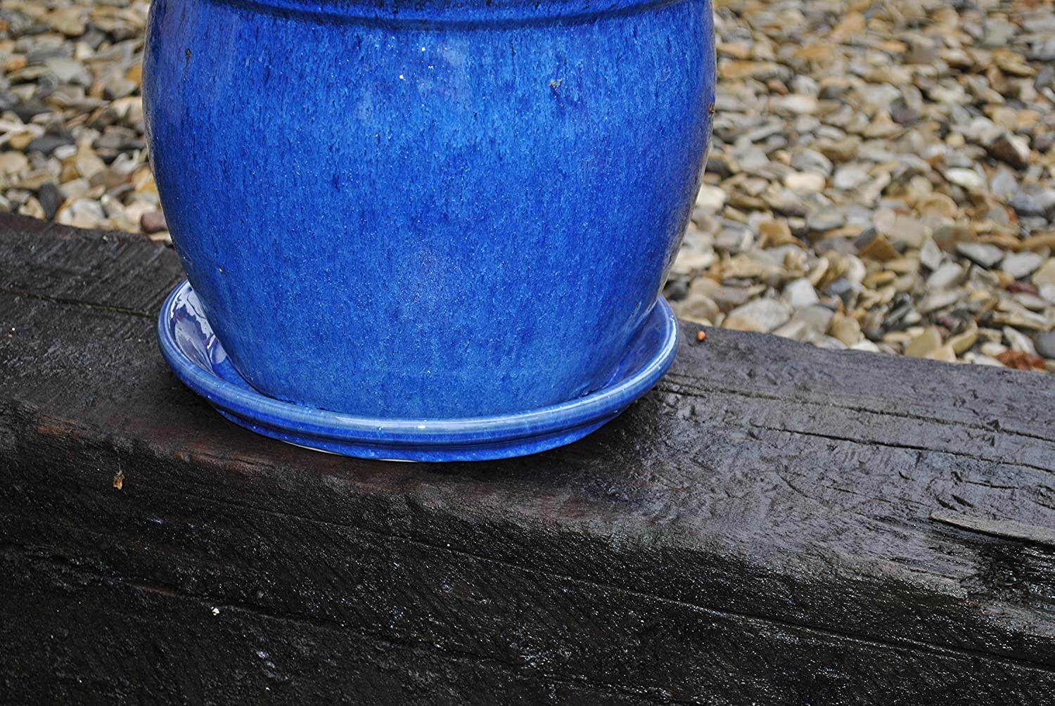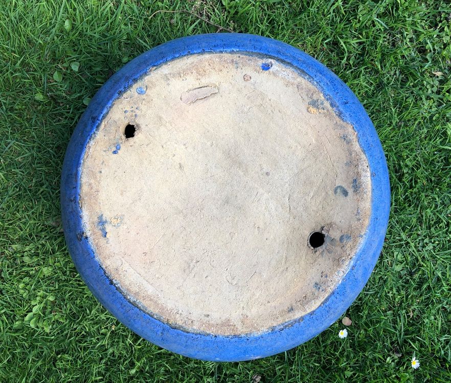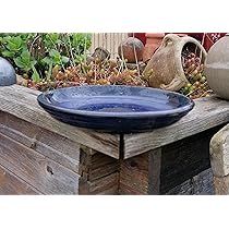 Winterfeste Vogeltränke ø25cm - Steinzeug Untersetzer Blau Glasiert