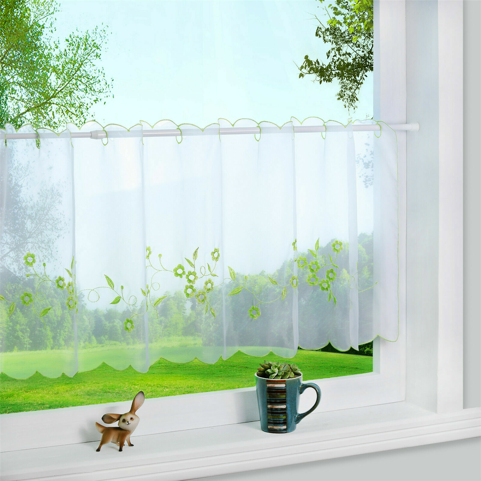 Charmante Landhaus-Atmosphäre für dein Zuhause! Diese wunderschöne Scheibengardine von KnBoB verzaubert jedes Fenster. Mit handgefertigter Rosenblumen-Stickerei auf halbtransparentem Voile-Stoff aus Premium-Polyester. Lässt 45% Licht durch für natürliche Helligkeit mit Sichtschutz. Inklusive Stangendurchzug für alle Standard-Gardinenstangen (28-35mm Durchmesser). Die 8cm Quastenverzierung verleiht ihr einen besonderen Charme. Maße: 45x130cm (Breite x Höhe) - perfekt für Fensterbreiten von 120-160cm. Einfache Montage ohne Werkzeug - einfach auf die Gardinenstange schieben. Pflegeleicht: maschinenwaschbar bei 30°C, bügelfrei. Ideal für Küche, Wohnzimmer oder Schlafzimmer. Schafft sofort eine gemütliche Wohlfühl-Atmosphäre im Bauernhaus- oder Shabby-Chic-Stil. Auch kombinierbar mit Plissee-Vorhängen für mehr Privatsphäre. Ein echter Hingucker für deine Fenster!