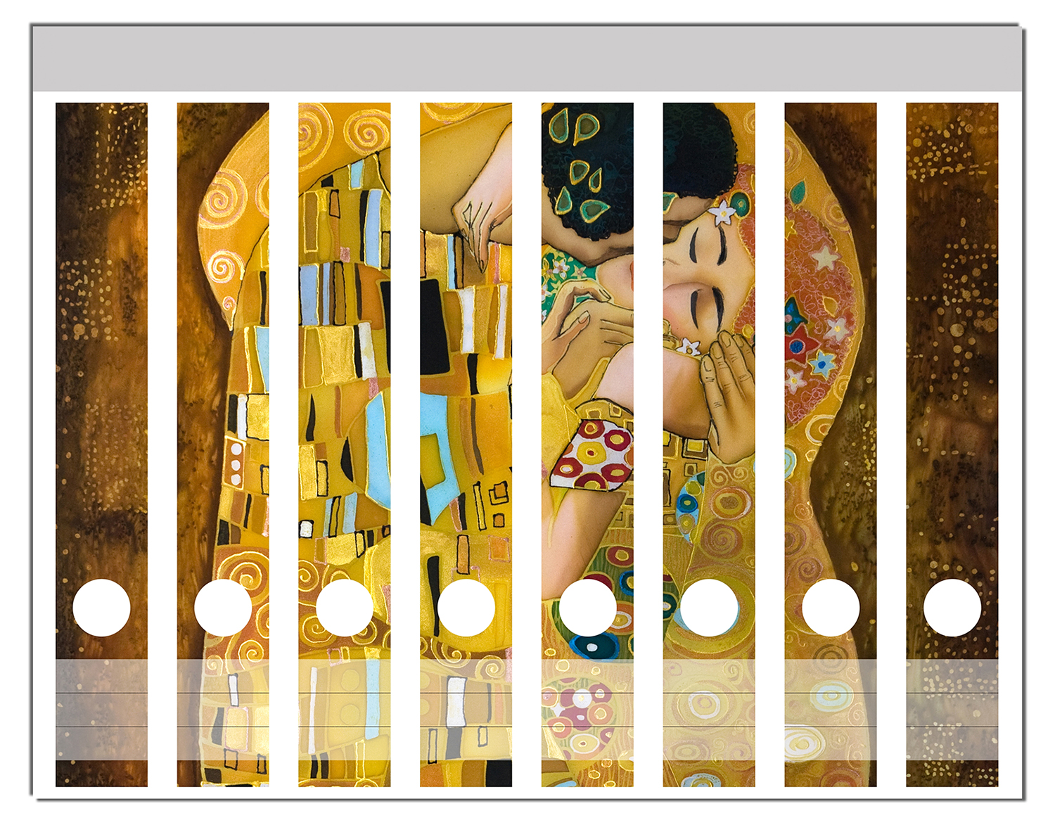 Mach deine Ordner zu kleinen Kunstwerken! Mit diesen wunderschönen Wallario Aufklebern nach Gustav Klimts berühmtem Gemälde \Der Kuss\ verwandelst du langweilige Ordnerrücken in eine persönliche Kunstgalerie. Perfekt fürs Büro, Homeoffice oder die Studiumsmappe.