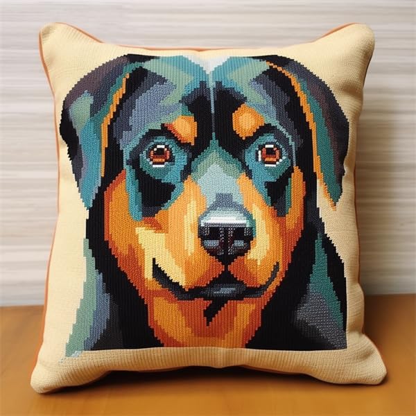 11CT Kreuzstich Kissen DIY Set - 45x45cm Vorbedruckt, Mit Garn & Nadel, Tier Hund Motiv