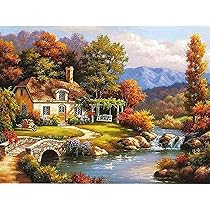 AxiangziK Kreuzstich Set Weihnachten - Vorgedruckt 11CT Häuser Straßenschneeszene 40x50cm
