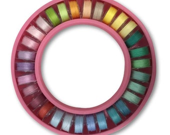 Endlich Ordnung im Nähkästchen! Dieser praktische Spulen-Organizer von Quilted Bear hält alle deine Nähfäden perfekt organisiert. Der Ring aus flexiblem thermoplastischem Gummi mit 13 cm Durchmesser lässt sich super einfach handhaben und die 30 transparenten Spulen sind schon mit je 25 Metern Allzweck-Baumwollfaden in verschiedenen dunklen Farbtönen vorgewickelt. So hast du immer den passenden Faden zur Hand! Der clevere Ring hält die Spulen sicher an ihrem Platz - selbst wenn er mal umfällt, geht nichts verloren. Perfekt für Nähanfänger und Profis gleichermaßen! Die Spulen lassen sich leicht entnehmen und austauschen, sodass du deine Lieblingsfarben immer griffbereit hast. Ob für Patchwork, Reparaturen oder kreative Nähprojekte - dieser Organizer spart dir Zeit und Nerven. Sag goodbye zum Faden-Chaos!