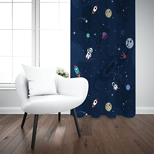 3D Astronaut Vorhang 140x160cm - Blickdicht Mit Ösen Für Kinderzimmer