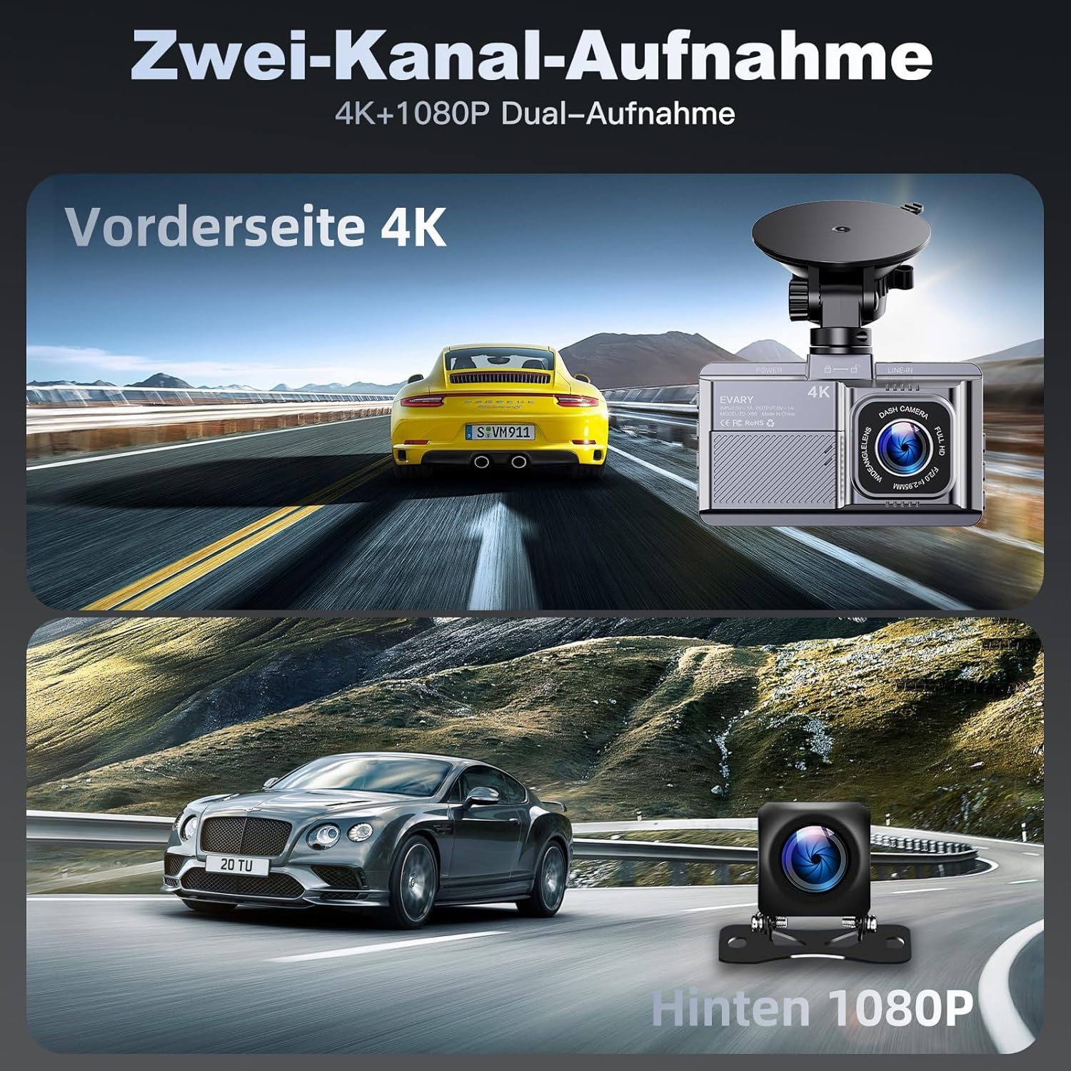 OryzomPro 4K Dashcam Auto Vorne & Hinten - 170° Weitwinkel Mit Nachtsicht