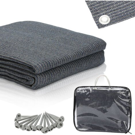 Camping-Urlaub ohne nassen Zeltboden? Mit diesem praktischen Zeltteppich von Gecheer schon! Die große Fläche von 250x550 cm bietet reichlich Platz vor deinem Zelt oder Wohnwagen. Aus hochdichtem Polyethylen (HDPE) gefertigt, ist der Teppich wasserdurchlässig und atmungsaktiv - Regenwasser kann einfach ablaufen. Die integrierten Ösen an den Ecken und in der Mitte ermöglichen eine sichere Befestigung, auch bei windigem Wetter. Einfach mit Wasser reinigen und bei Bedarf auf die gewünschte Größe zuschneiden. Perfekt für Campingplätze, Festivals oder den heimischen Garten. Schaff dir deine eigene gemütliche Outdoor-Lounge - ohne Schlamm, Sand oder nasses Gras. Deine Füße werden's dir danken!