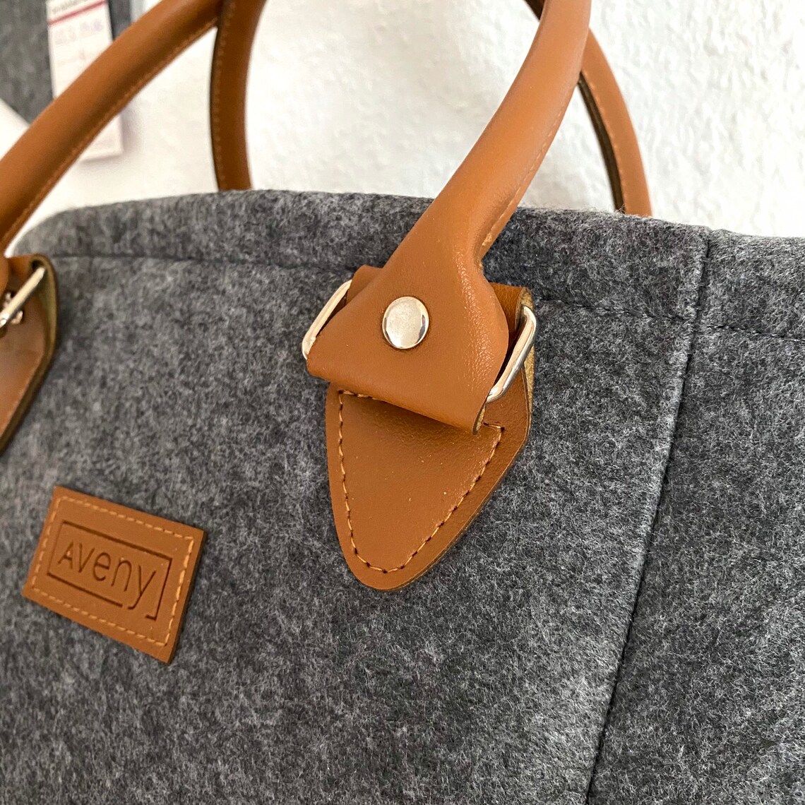 Filz Einkaufstasche Mit (W)EINKAUFEN Aufdruck - Grauer Shopper 50x24x25 Cm