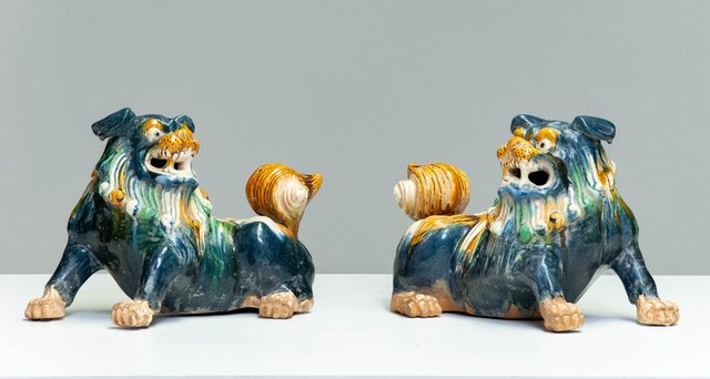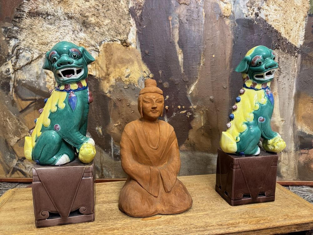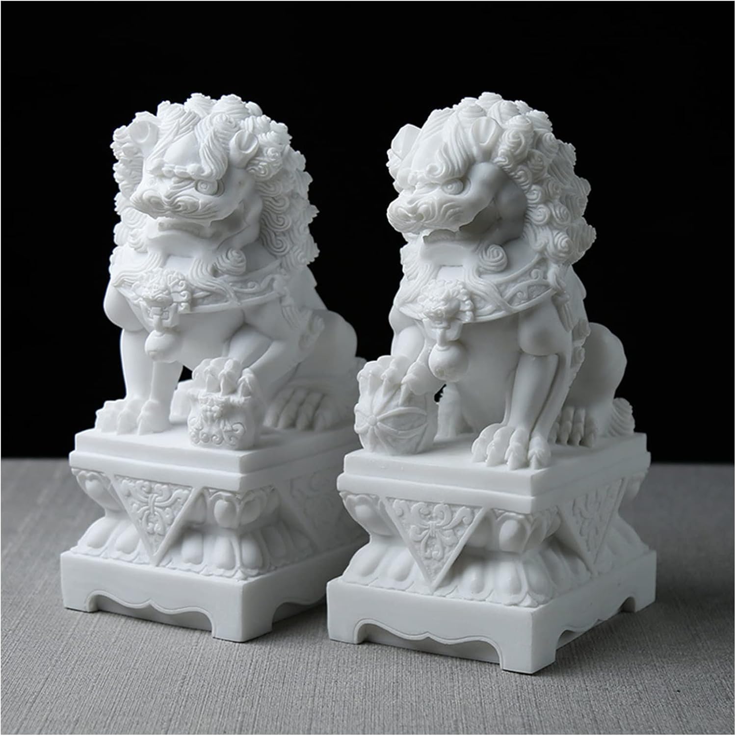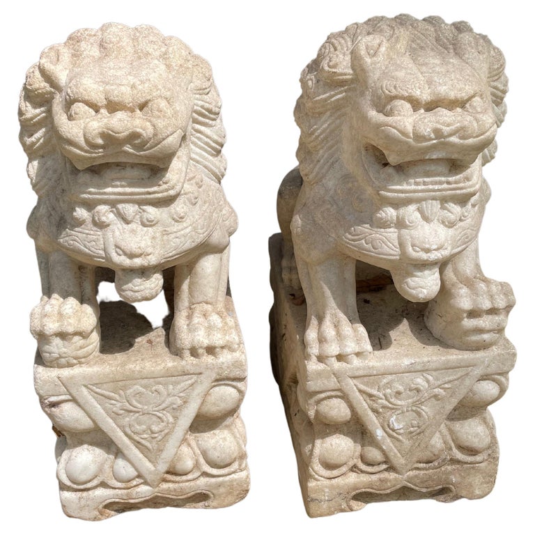 Chinesische Foo Dogs Wächterlöwen Aus Naturstein - Feng Shui Glücksbringer 15cm