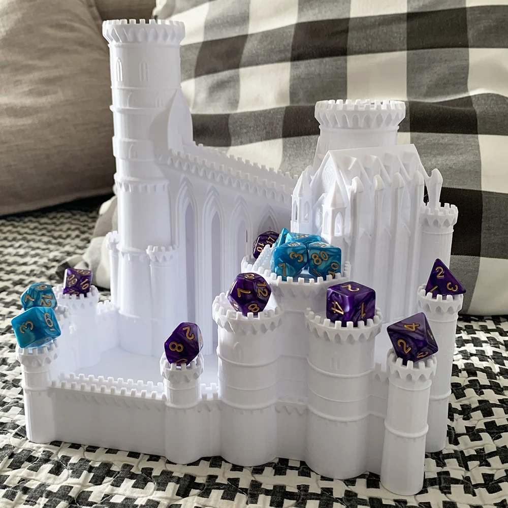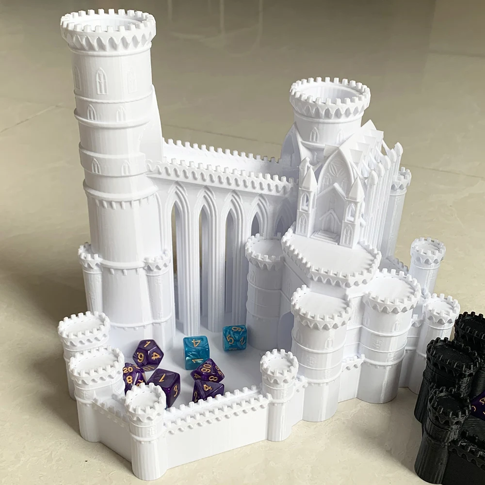 Bring Fairness und Spaß in deine Spielenächte! Dieser coole Würfelturm im Burg-Design sorgt für absolut zufällige Würfelergebnisse - keine manipulierten Würfe mehr! Mit den Maßen 14,4x11,2x10cm passt er perfekt auf jeden Spieltisch. Das robuste Legierungsmaterial hält auch intensiven Spielabenden stand. Das integrierte Tablett fängt die Würfel sicher auf, sodass nichts vom Tisch fällt. Besonders praktisch bei Rollenspielen wie Dungeons & Dragons. Das kreative Burg-Design inspiriert die Fantasie und macht jedes Spiel zum Erlebnis. Einfach Würfel oben reinwerfen und unten das Ergebnis ablesen - so einfach geht faires Spielen!