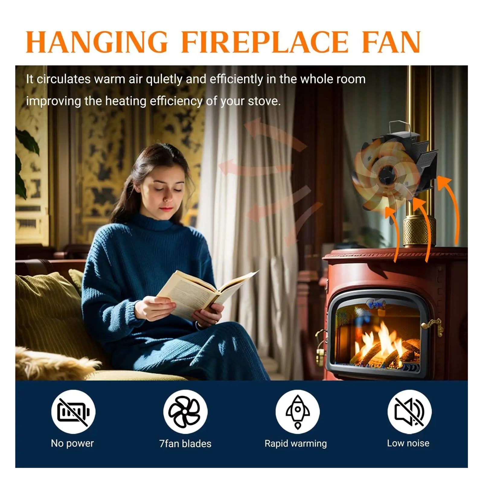 KUGGKKTP Kaminventilator Wärmebetrieben - 7 Flügel Für Bessere Wärmeverteilung