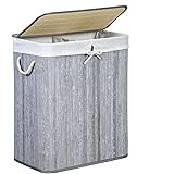 SONGMICS Wäschekorb 95L Bambus - Faltbarer Wäschesammler Mit Deckel