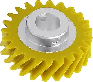 Wenn dein Whirlpool-Mixer rattert oder nicht mehr richtig mixert, ist dieses Schneckengetriebe die Lösung! Das gelbe Nylon-Zahnrad mit Aluminium-Komponenten ersetzt die Originalteile 4162897, 4169830, AP4295669, PS11748374, 4161531 und WPW10112253. Einfach zu installieren - kein Profi nötig. Mach deinen Mixer wieder fit für Teig, Smoothies und Cremes. Mit Basis-Durchmesser von 3,7 cm und mittlerem Loch von 1 cm passt es perfekt. Gib deinem Küchenhelfer ein zweites Leben!