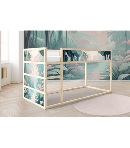 Alter Schwede, was für eine coole Deko fürs Kinderzimmer! Diese Dinosaurier-Aufkleber verwandeln das langweilige IKEA KURA Bett in eine aufregende Urzeit-Landschaft. Da wimmelt es nur so von T-Rex, Brachiosaurus, Velociraptor und Triceratops - einfach mega für kleine Dino-Fans! Die Aufkleber sind aus hochwertiger Vinyl-Folie und total einfach anzubringen. Kein klebriges Gepansche mit Kleber - einfach abziehen und aufs Bett kleben. Und wenn's mal nicht mehr gefällt, lassen sie sich auch rückstandslos wieder entfernen. Das Beste: Die Aufkleber sind absolut unbedenklich für Kinder! Greenguard zertifiziert, frei von schädlichen Stoffen und geruchsneutral. So kannst du mit gutem Gewissen die Dino-Welt ins Kinderzimmer holen. Die handgezeichneten Motive sehen richtig professionell aus und die matte Oberfläche passt sich perfekt dem Bett an. Übrigens: Möbel sind nicht im Lieferumfang enthalten - nur die ultra-coolen Aufkleber! Perfekt um dem Kinderzimmer einen individuellen Touch zu verleihen und die Fantasie der Kleinen anzuregen. Einfach aufkleben und staunen, wie aus dem langweiligen Bett eine aufregende Dino-Landschaft wird!