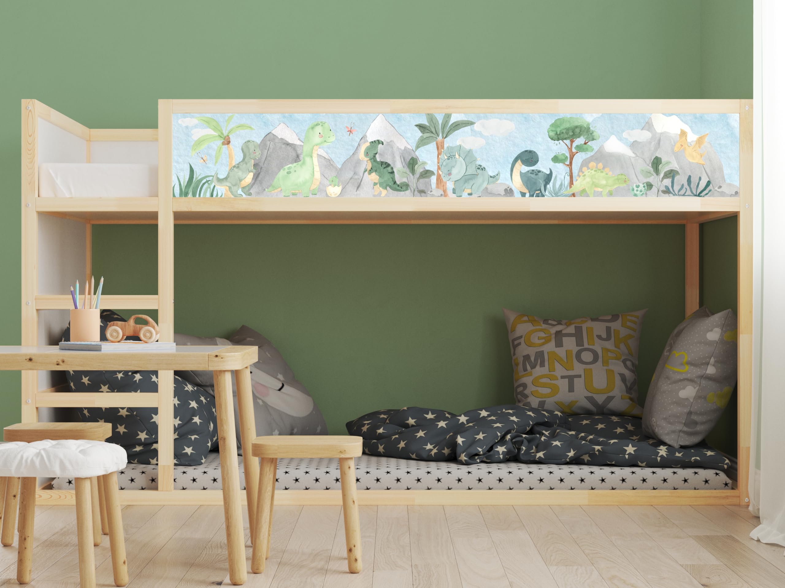 WANDKIND Dinosaurier Aufkleber Für IKEA KURA Bett - Kinderzimmer Deko Mit T-Rex & Triceratops