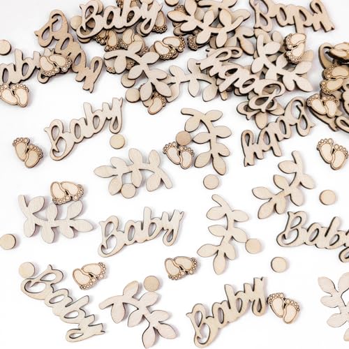 WANYIG Babyparty Deko 100-teilig - Holz Streudeko Für Baby Shower & Taufe