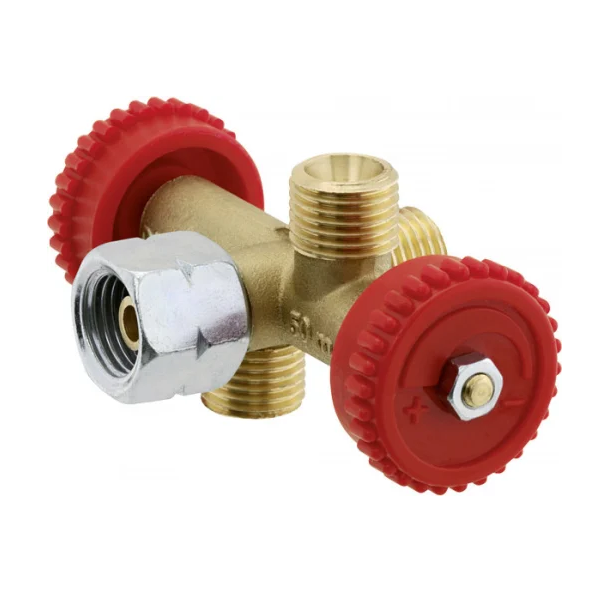 WJnflQN Flaschenteiler Für Gasflaschen - Doppelanschluss Mit Manometer Aus Messing