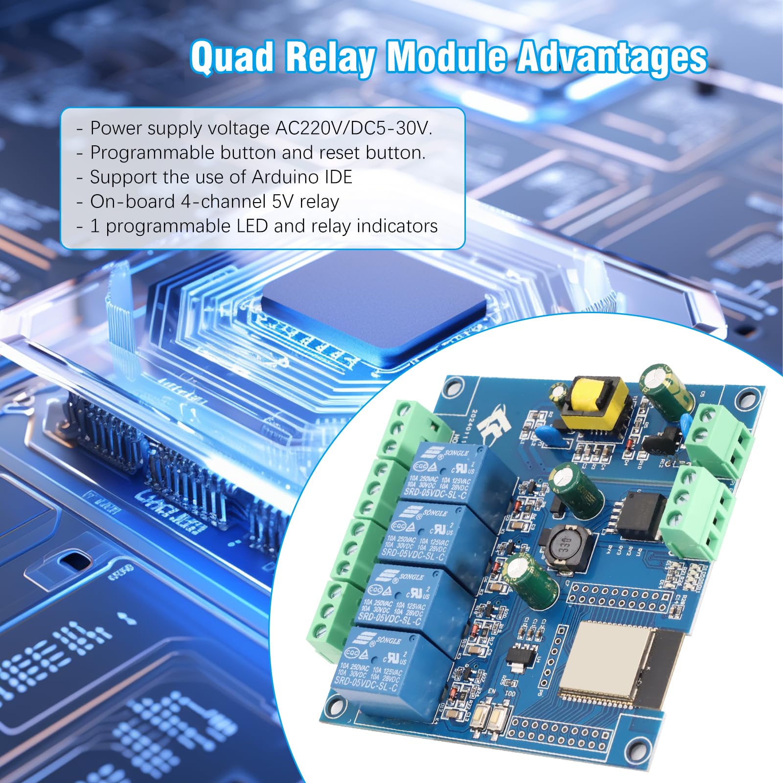 Für alle Smart Home Bastler: Dieses WLAN Relaismodul mit ESP32-WROOM-32E ist super für deine Heimautomation! Mit 2 Kanälen und 30A Schaltleistung kannst du Lampen, Motoren oder andere Geräte per App steuern. Läuft mit 7-28V oder 5V Stromversorgung und hat alle Anschlüsse herausgeführt. Perfekt für Arduino, VSCode oder andere Entwicklungsumgebungen. Mit programmierbaren Tasten und LEDs für schnelles Prototyping. Einfach SDK-Code flashen und schon kannst du über WLAN von deinem Smartphone aus schalten. Mach dein Zuhause smart - der Kreativität sind keine Grenzen gesetzt!