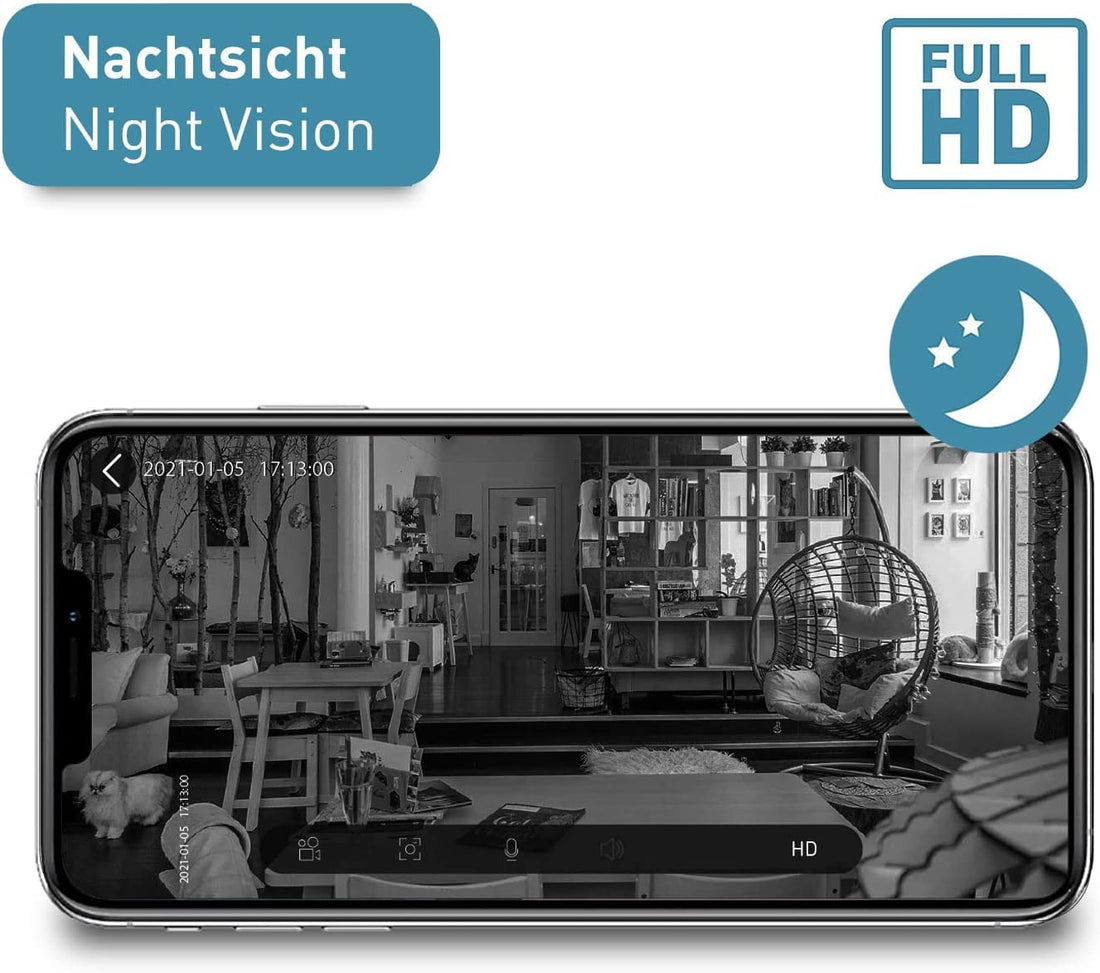 Wow, diese Roboterkamera ist der absolute Hit für dein Zuhause! Stell dir vor: Du kannst von überall auf der Welt checken, was bei dir los ist. Per App steuerst du die Kamera komplett - sie dreht sich 360 Grad und du siehst wirklich jeden Winkel! \\n\\nDie 1080P Auflösung ist mega scharf, sowohl bei Tag als auch in der Nacht. Ja, genau - mit der Nachtsichtfunktion siehst du auch im Dunkeln alles kristallklar. Perfekt um nachts zu schauen, ob die Kinder schlafen oder ob die Haustiere Quatsch machen. \\n\\nDie KI erkennt Bewegungen und Gesichter super genau. Du bekommst sofort eine Benachrichtigung aufs Handy, wenn was los ist. Und das Zwei-Wege-Audio ist genial - du kannst direkt mit deiner Familie oder den Haustieren sprechen! \\n\\nOb für die Wohnung, das Kinderzimmer oder den Urlaub - diese Kamera gibt dir totales Sicherheitsgefühl. Einfach per WLAN einrichten und los geht's! Kompakt, leise und sieht dazu noch stylisch aus. Ein Must-Have für jedes moderne Zuhause!