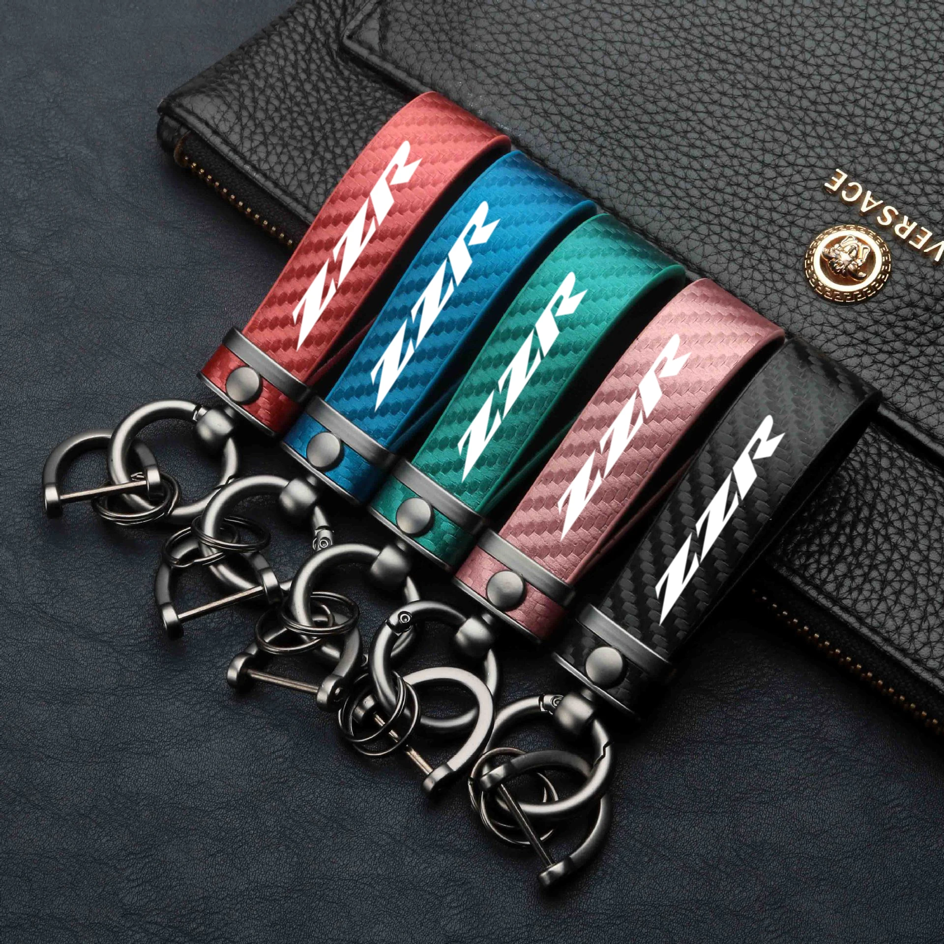 WRFUU Motorrad Schlüsselanhänger - Leder & Carbonfaser Für Kawasaki ZZR-Modelle