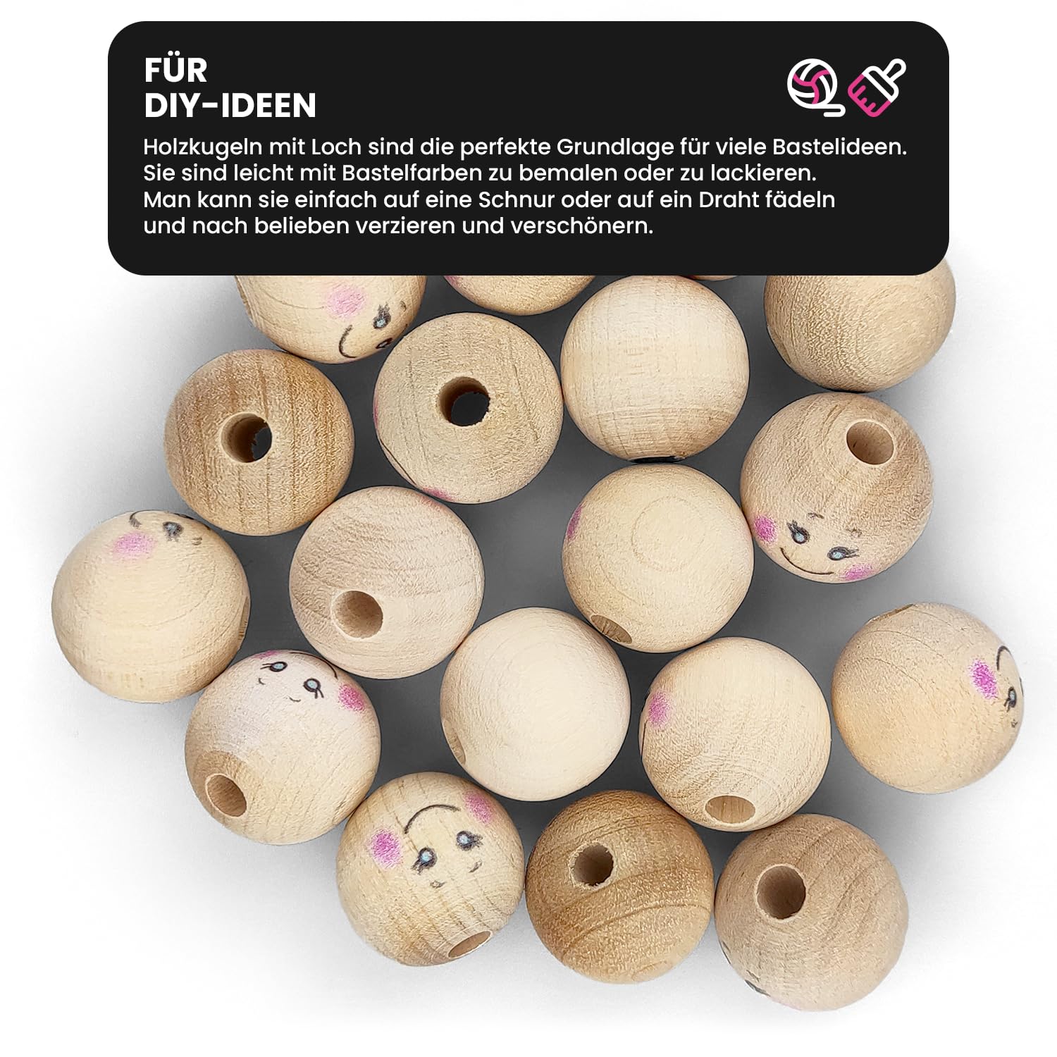 Kreative aufgepasst! Diese 5 naturbelassenen Holzkugeln sind das perfekte Material für alle Bastelprojekte. Mit 4cm Durchmesser sind sie schön groß und liegen gut in der Hand. Ohne vorgebohrte Löcher kannst du sie ganz nach deinen Wünschen bearbeiten - bemalen, bekleben, schnitzen oder einfach naturbelassen lassen. Aus massivem Hartholz gefertigt, sind sie robust und langlebig. Ob für selbstgemachte Weihnachtskugeln, Mobiles, Spielzeug für Kinder, Fotorequisiten oder Deko-Objekte - deiner Fantasie sind keine Grenzen gesetzt. Die glatte Oberfläche ist ideal zum Bemalen mit Acrylfarben, und die natürliche Holzmaserung sieht einfach schön aus. Perfekt für Kindergarten, Schule, Hobbykeller oder gemütliche Bastelabende. Einfach auspacken und loslegen - was wirst du daraus machen? Vielleicht ein Mobile fürs Kinderzimmer, individuelle Christbaumkugeln oder coole Spielfiguren? Der Kreativität sind keine Grenzen gesetzt!