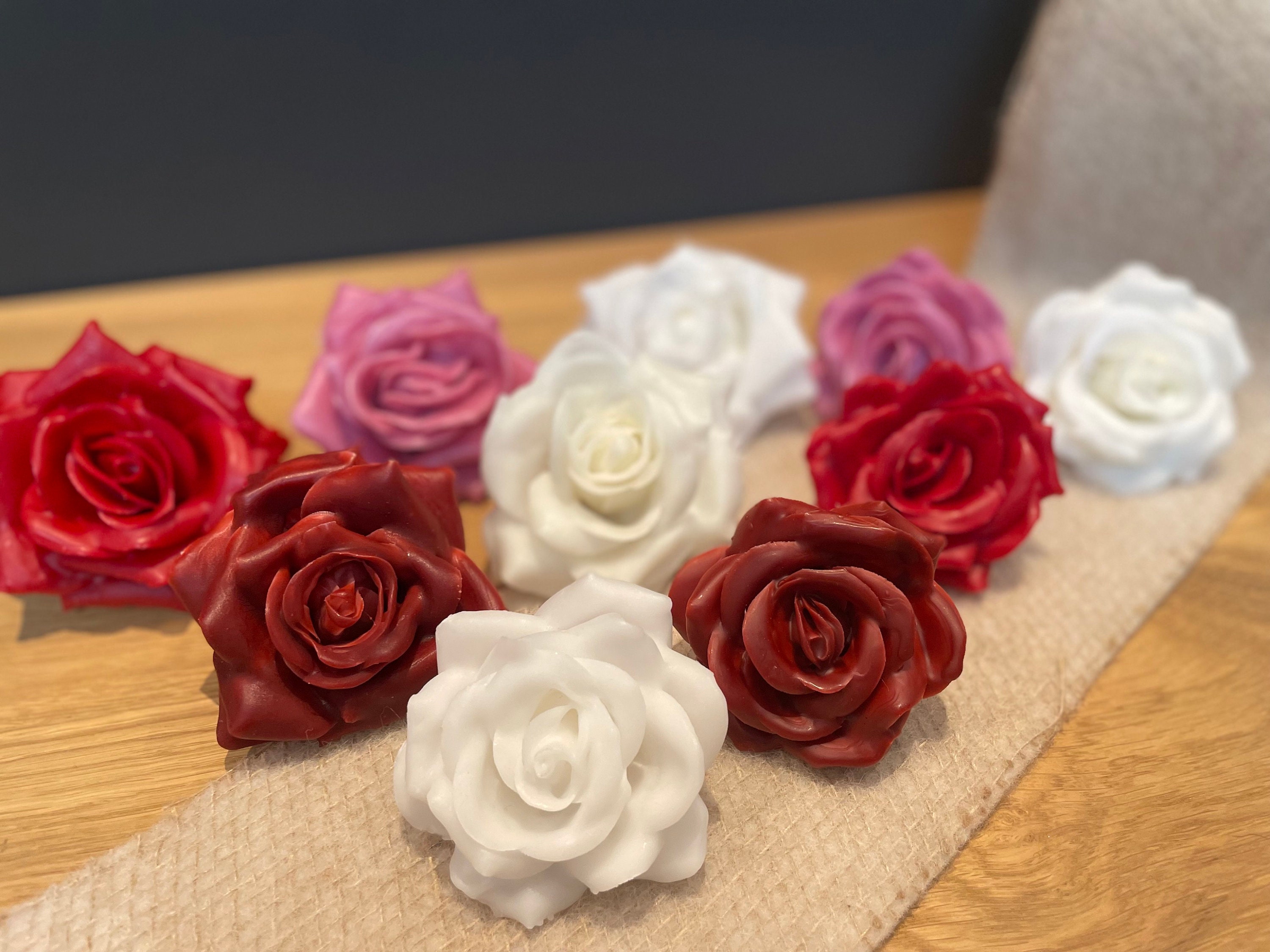 Diese wunderschönen Wachsrosen von Klocke Kerzen sind einfach bezaubernd! Das Set enthält 12 komplett mit Wachs überzogene Rosen in Dunkelrot, jeweils etwa 10 cm groß. Sie sind wasserfest und daher perfekt für die Herbstfloristik, Allerheiligen oder Grabgestecke. Mit den beiliegenden Holzstäben kannst du sie ganz einfach in Kränze, Gestecke oder Arrangements integrieren. Stell sie in die Mitte eines Kranzes aus Rebenzweigen, verziere sie mit Zapfen und Beeren - deiner Kreativität sind keine Grenzen gesetzt! Auch als Weihnachtsdeko super geeignet. Achtung: Nicht dauerhaft Wasser aussetzen!