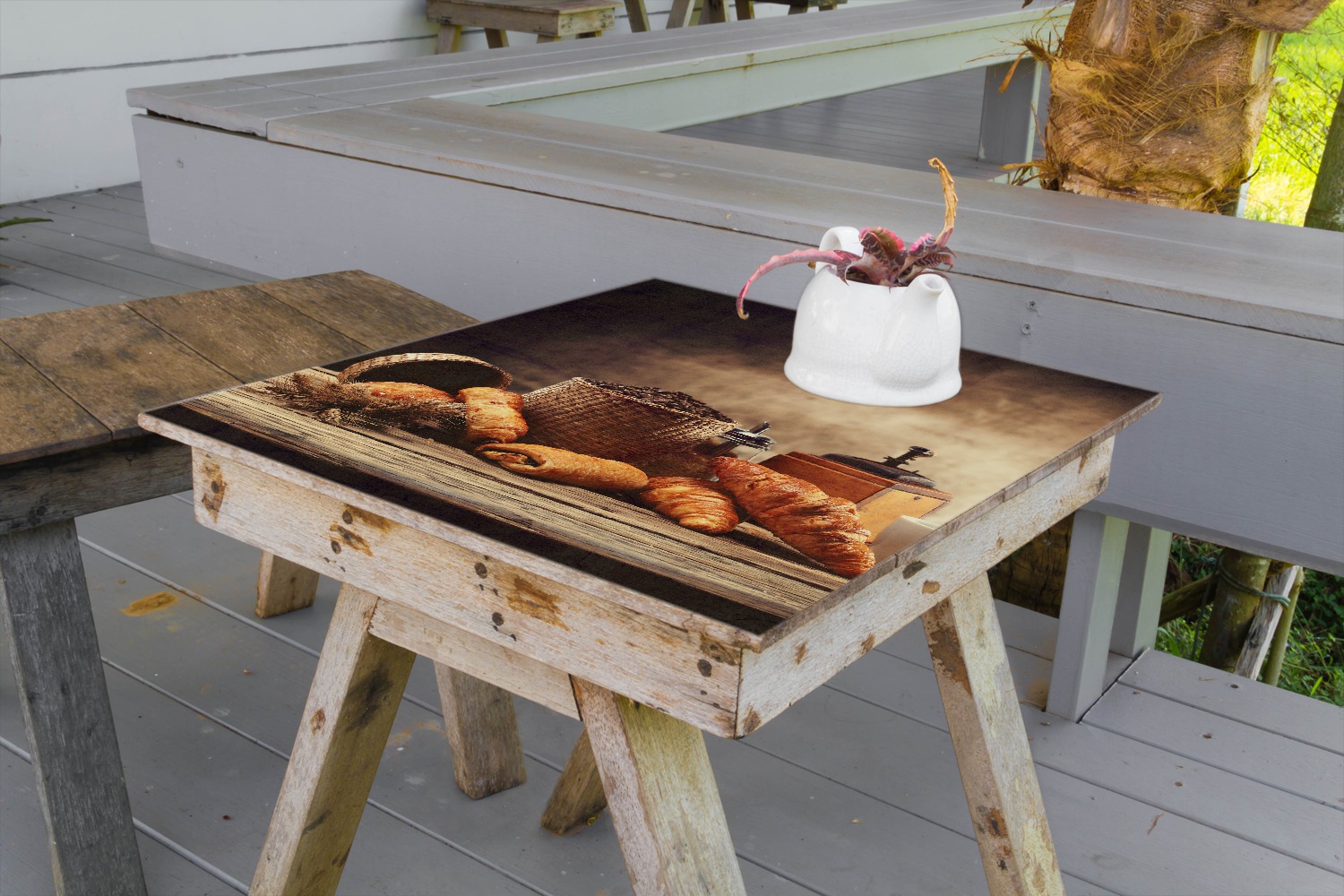 Wallario Kühlschrank Aufkleber 'Französisches Frühstück' - 60x60cm Selbstklebende Folie