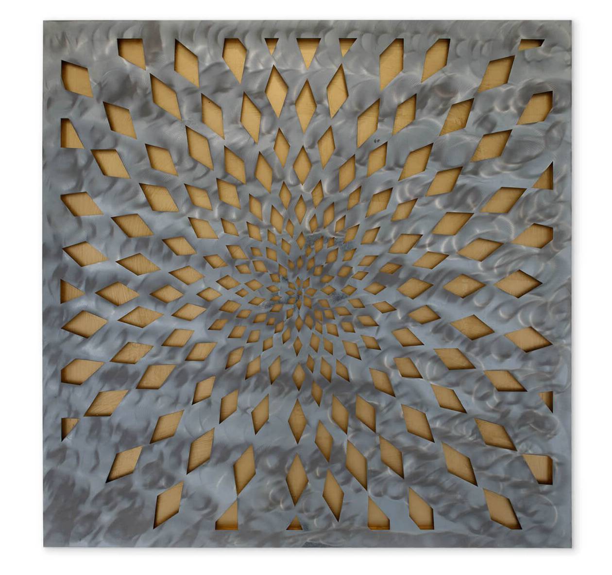 XXL Metall-Wandbild 66x66cm - Abstraktes Geometrie-Muster In Schwarz, Braun, Weiß