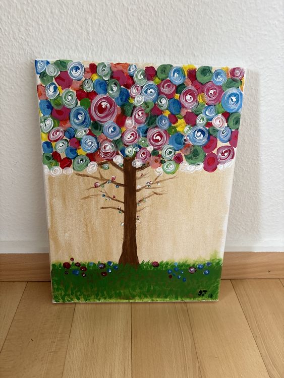 Lebensbaum Wandbild 80x120cm - Abstrakte Leinwand Für Wohnzimmer Deko