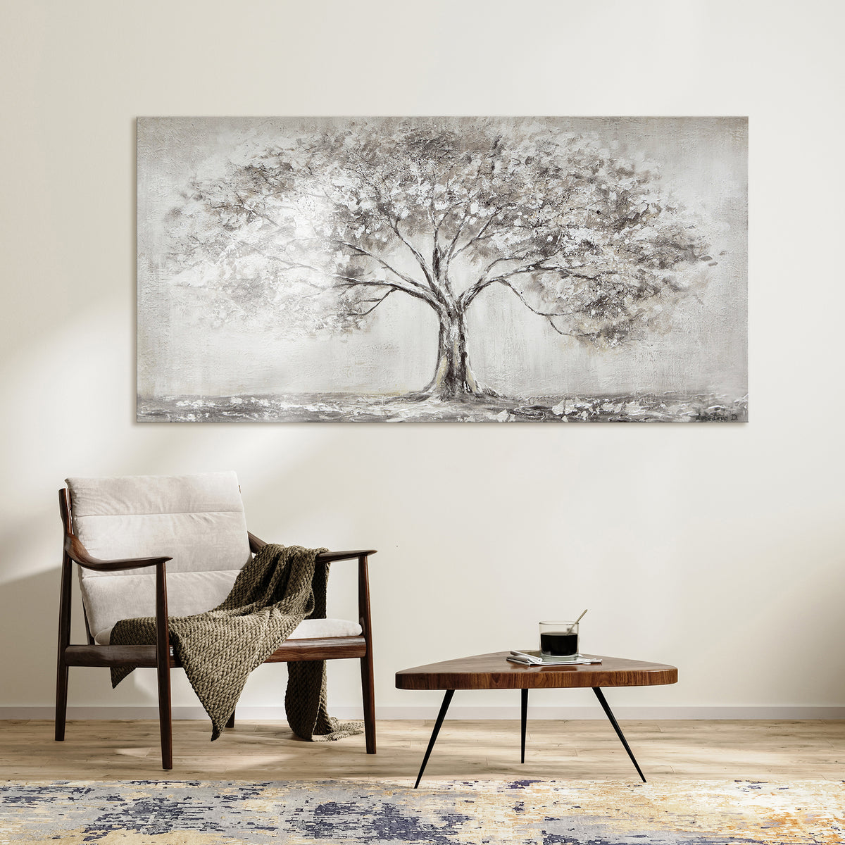 Bring Natur in deine vier Wände! Dieses wunderschöne Lebensbaum-Wandbild in Weiß auf Leinwand verleiht jedem Raum sofort mehr Tiefe und Eleganz. Mit den großzügigen Maßen von 80x120cm wird es zum absoluten Eyecatcher in deinem Wohnzimmer, Schlafzimmer oder Flur. Die hochwertige Leinwand ist auf einen stabilen Echtholzrahmen aufgespannt und kommt ungerahmt - du kannst es also sofort aufhängen. Die lebendigen Farben und das detailreiche Design kommen perfekt zur Geltung. Das abstrakte Baum-Motiv symbolisiert Wachstum und Leben und passt zu vielen Einrichtungsstilen. Perfekt als Deko fürs Badezimmer, als beruhigendes Element im Schlafzimmer oder als inspirierender Hingucker im Home-Office. Einfach aufhängen und schon verändert sich die ganze Raum-Atmosphäre. Auch ein tolles Geschenk für Einweihungen, Geburtstage oder Weihnachten. Mit diesem Bild holst du dir ein Stück Natur ins Haus - ohne Gießen und ohne grünen Daumen!