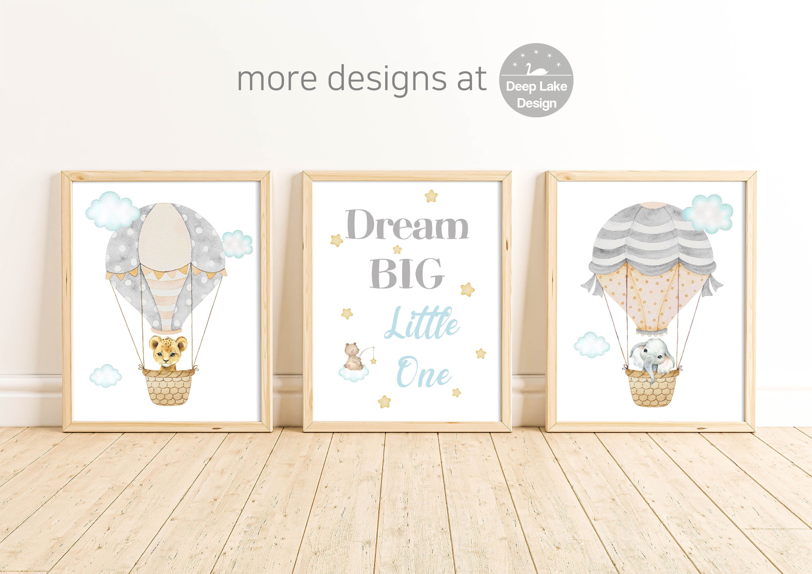 Bumbleboo Kinderzimmer Wandbilder Set - 3 Heißluftballon Safari Tiere Drucke 20,3x25,4cm