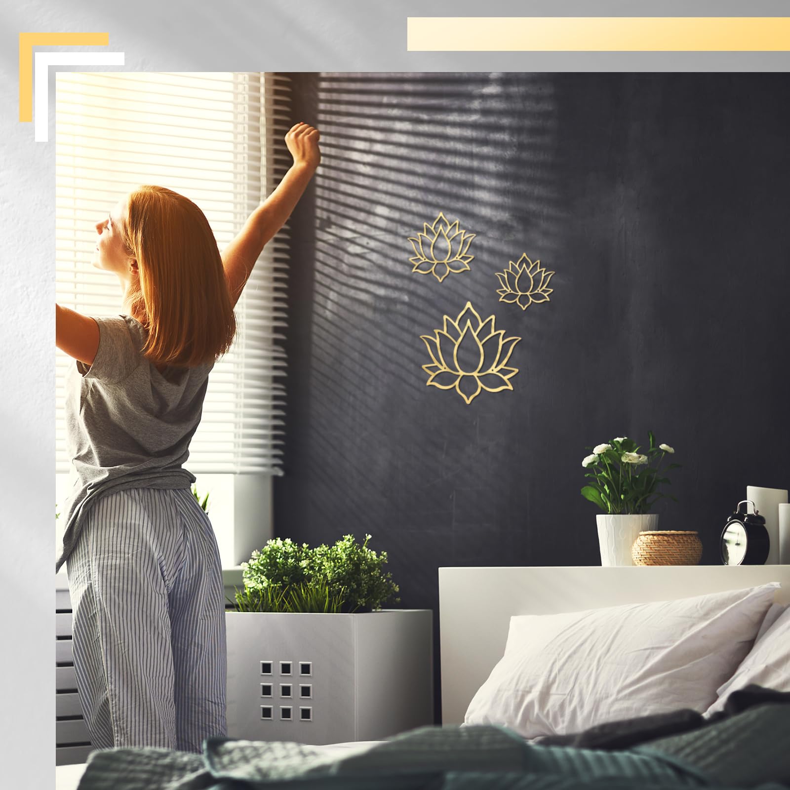 Diese wunderschöne Lotusblume aus Metall bringt Ruhe und Eleganz in deine vier Wände! Mit 40x25cm die perfekte Größe für über dem Sofa, im Flur oder im Yoga-Studio. Das aufwendig gearbeitete Mandala-Design symbolisiert Reinheit und Erleuchtung - einfach inspirierend! Aus robustem, rostbeständigem Metall gefertigt - hält ewig und behält seine Schönheit. Die goldene Farbe verleiht jedem Raum sofort eine warme, spirituelle Atmosphäre. Einfach zu montieren - alle notwendigen Befestigungen sind dabei! Passt zu modernem, böhmischem oder traditionellem Einrichtungsstil. Auch ein tolles Geschenk für Freunde, die besondere Wohnaccessoires lieben. Einfach aufhängen und sich an der positiven Energie erfreuen, die diese Lotus-Blume verbreitet!