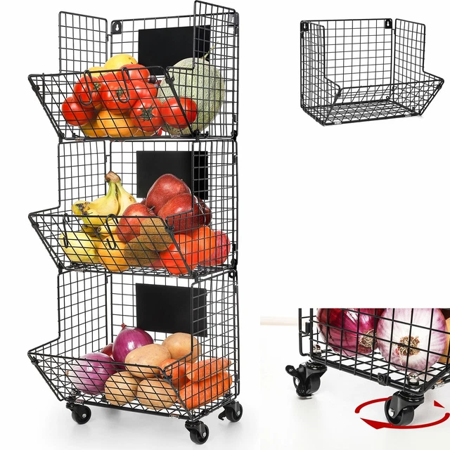 Aufbewahrungskorb Aus Kunststoff-Rattan - Wandhängend Für Knoblauch & Obst