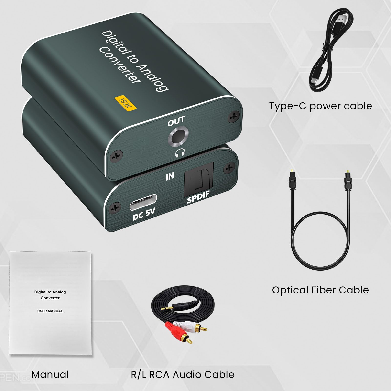LiNKFOR DA Wandler 192kHz - Digital Zu Analog Audio Konverter Mit Optischem Kabel