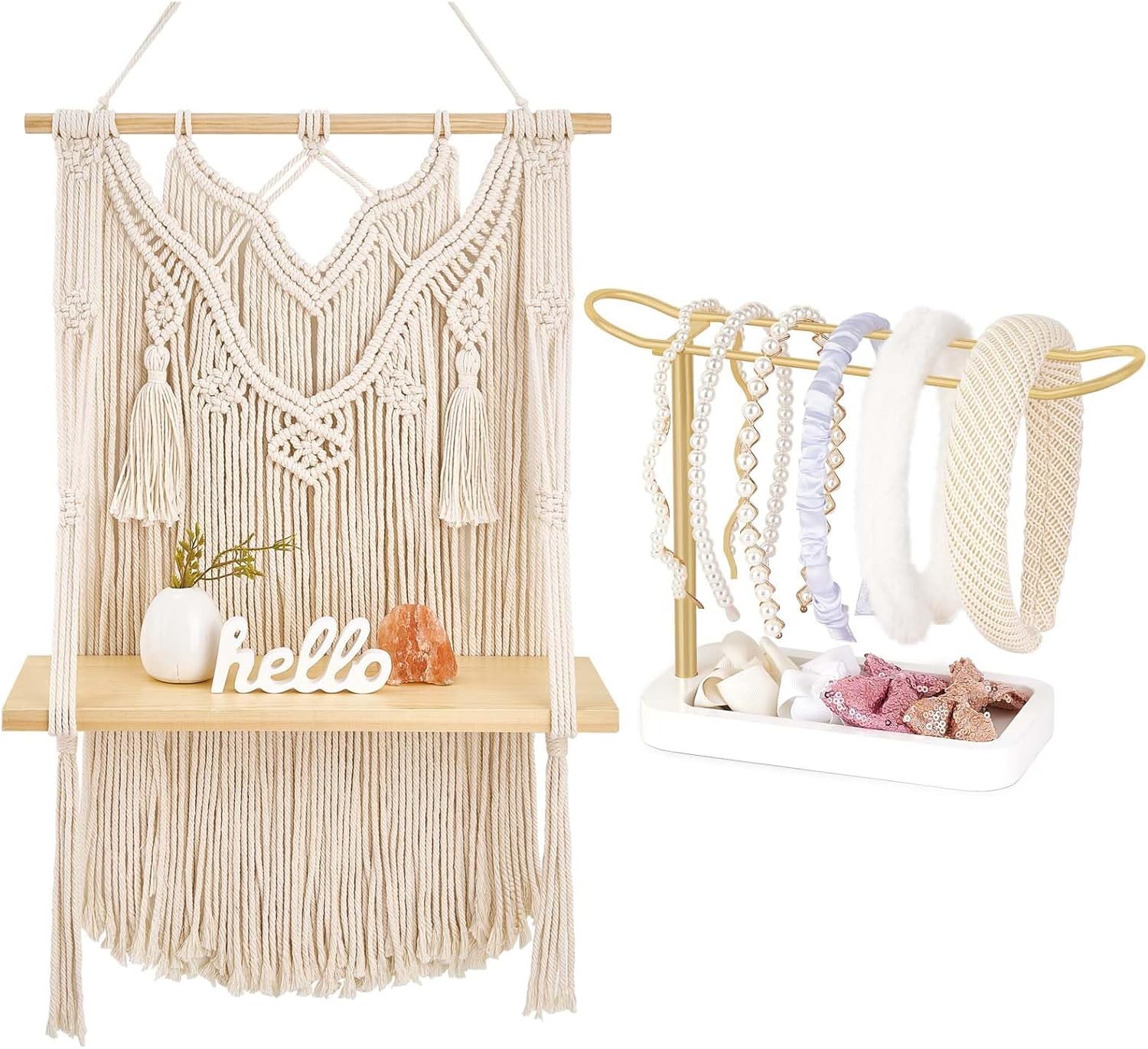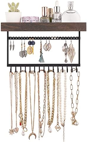 Mkono Schmuck-Organizer Wandmontage - Mit Holzregal, Ringbox & Ohrringhalter