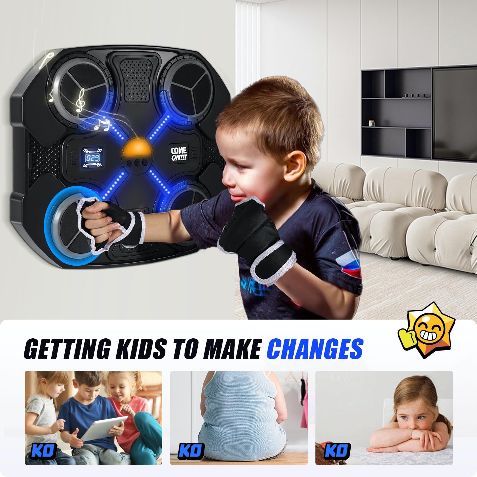Bring Bewegung ins Kinderzimmer! Diese coole Boxmaschine macht aus jedem Schlag ein rhythmisches Abenteuer. Mit Bluetooth für deine Lieblingsmusik und 11 Geschwindigkeitsstufen. Einfach an die Wand kleben (Aufkleber inklusive) und losboxen! Inklusive Boxhandschuhe und USB-Ladekabel. Perfekt für Kinder von 3-8 Jahren - fördert Koordination und macht riesig Spaß. Reduziert Bildschirmzeit und bringt Action ins Haus. Das ideale Geschenk für aktive Kids! Einfache Installation, sofort spielbereit.