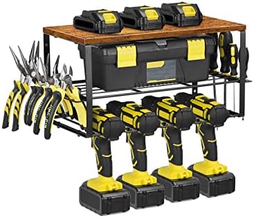 Boah, endlich Ordnung in der Werkstatt! Dieses praktische Wandregal von HENGMEI ist der absolute Game-Changer für deine Garage. Statt deine ganzen Elektrowerkzeuge irgendwo rumliegen zu haben, kriegst du hier alles schön sortiert unter. Das coole Teil hat 4 extra Fächer genau für deine Akku-Bohrer und Schlagbohrschrauber - da passt echt fast jede Marke rein. Oben ist noch ne Ablagefläche für Ladegeräte und Kleinkram, und an der Seite hängen 10 robuste Haken für Zubehör. Macht einfach Sinn! \\n\\nUnd keine Sorge, das Ding ist stabil: Aus 0,8mm starkem Eisen mit dieser schicken schwarz-gelben Oberfläche, die kaum Kratzer kriegt. Montieren? Total easy - vorgebohrte Löcher und Schrauben sind dabei, kein Hexenwerk. Brauchst nicht mal besonderes Werkzeug dafür. \\n\\nOb in der Heimwerker-Ecke, professionellen Werkstatt oder Garage - dieses Regal nutzt einfach jeden Zentimeter Wandfläche optimal. So hast du mehr Platz am Boden und alles Wichtige immer griffbereit. Deine Kids und Haustiere kommen auch nicht mehr an die gefährlichen Teile ran. Win-win! \\n\\nMaße: 42cm x 22,5cm x 40,5cm - perfekt für den meisten Stauraum ohne viel Platz wegzunehmen. Lieferung inklusive Montagematerial. Einfach aufhängen und nie wieder suchen müssen!