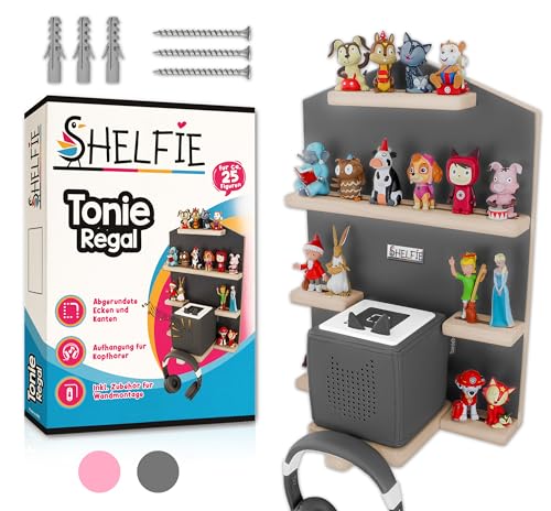 Platz für die Toniebox, Ladestation, Kopfhörer und bis zu 20 Figuren. Mit verbesserter Schraube für stabileren Halt der Kopfhörer. Inklusive Montagematerial - einfach an die Wand schrauben.