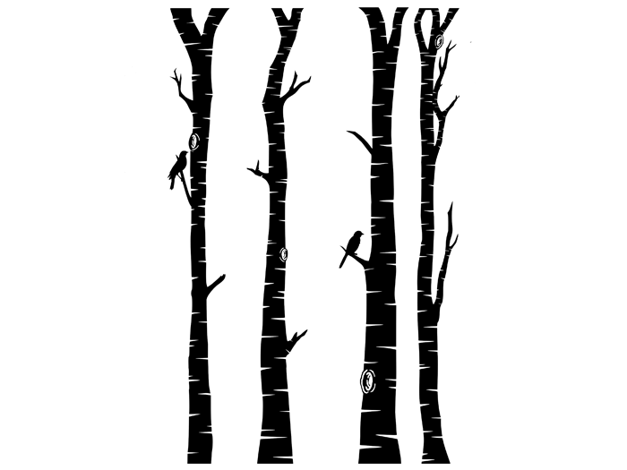 Grandora Wandtattoo XXL Birken Mit Vögeln 267x250cm - Dunkelgrau